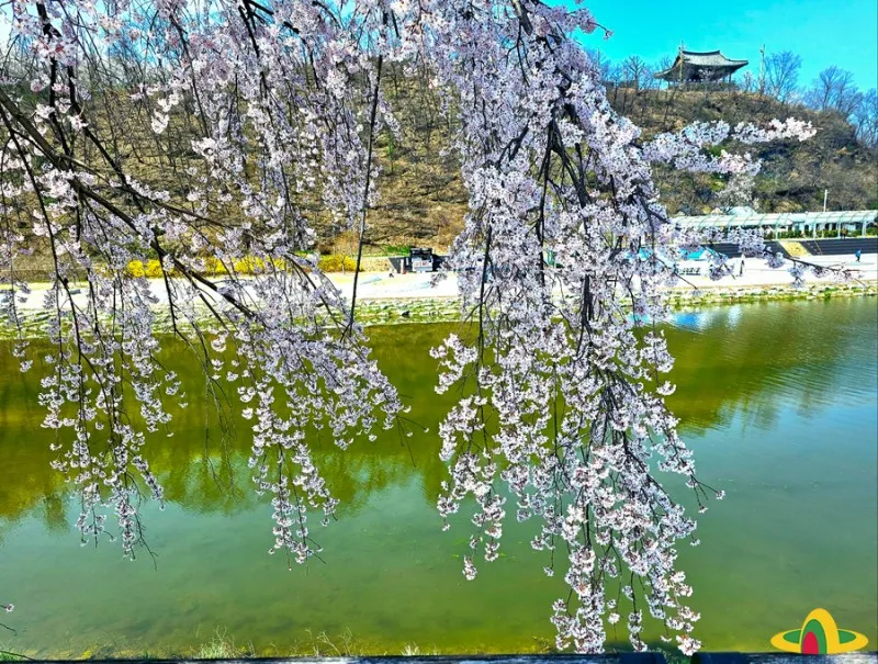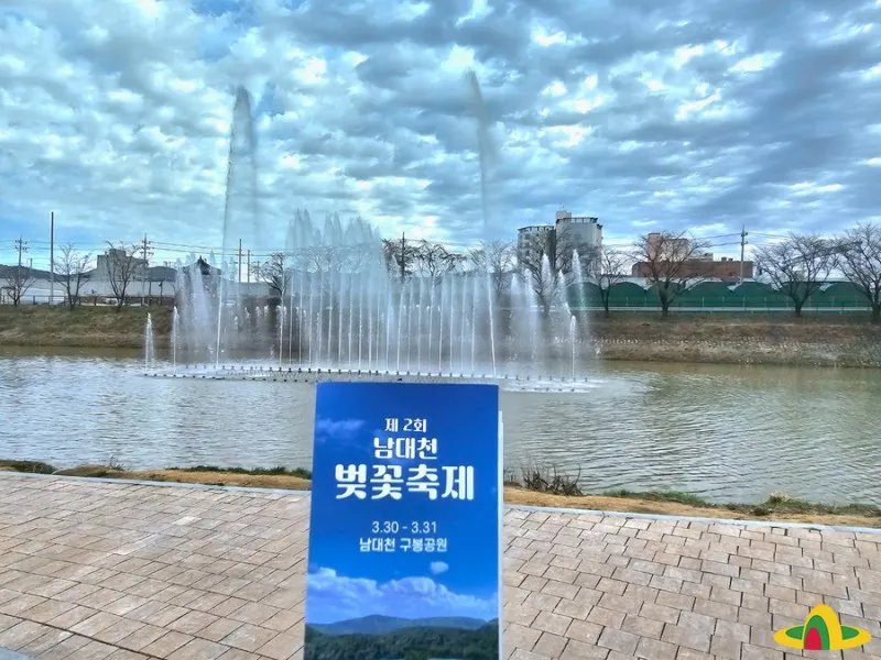 꿀팁을 하나 알려드리자면, 벚꽃이 만개할 때 의성 남대천에 방문하셔서 분수와 함께 수양벚꽃을 찍으면 예쁜 사진이 나오실 거예요~ 또한 야간에는 조명이 켜진 분수가 나와서 나름의 매력이 있답니다.👍🏻