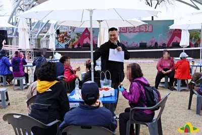 축제장에서 공연은 빠질 수 없죠?+_+ 제가 방문했을 때는 품바공연과 벚꽃 버스킹이 열리고 있었는데, 31일까지 다양한 공연과 버스킹이 열렸답니다. 레크리에이션으로 선물을 받을 수 있는 이벤트도 있었고, 지역공연팀 공연 및 버스킹도 있어서 아이들과 가족 나들이 온 분들이 많았어요!