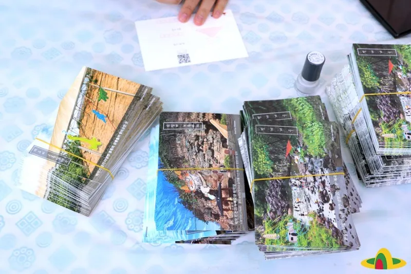 이곳에서 스탬프 도장을 찍고 다시 1코스로 가서 선물을 받았어요. 스탬프 도장은 코스마다 색깔이 다르니 세 곳을 모두 돌고 도장을 받으시면 되는데, 스탬프도 찍고 의성지질공원에 대해서 엽서로 알 수 있습니다.^_^
