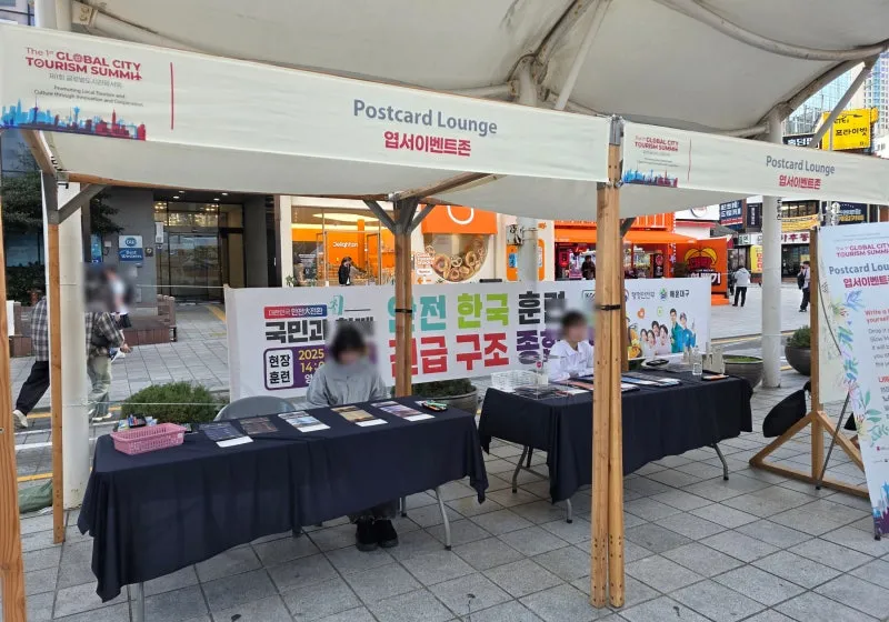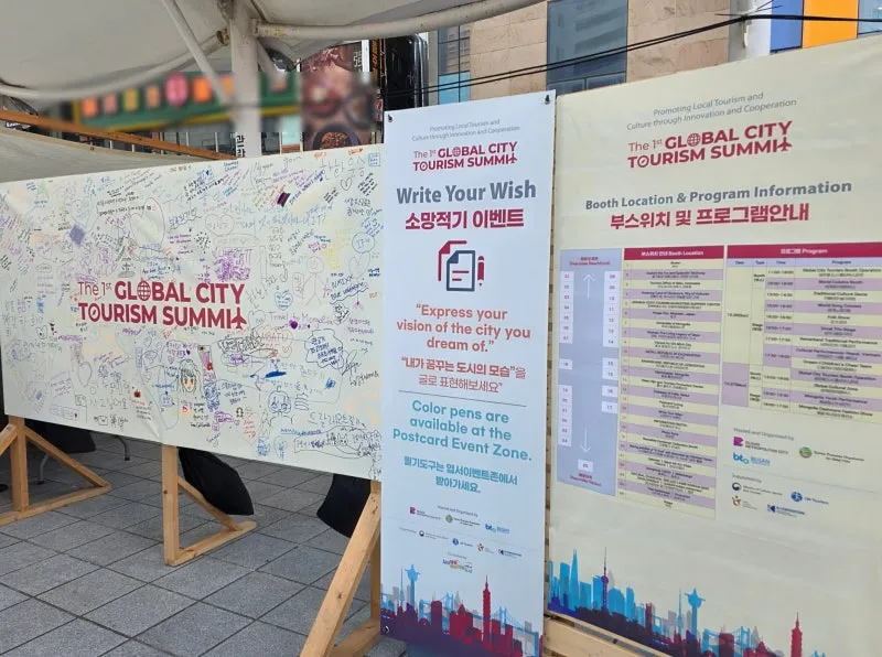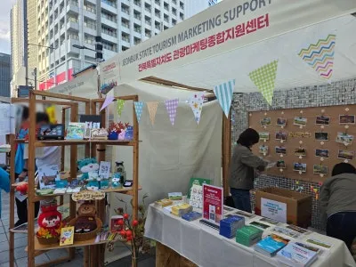 입구에 국내 도시들을 알리는 부스가 설치되어 있었어요.
