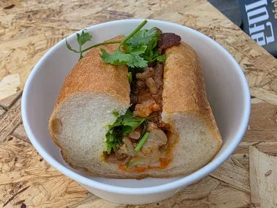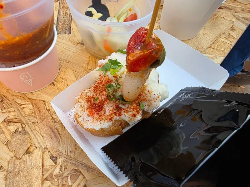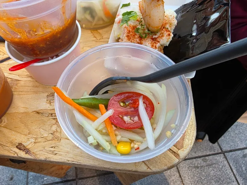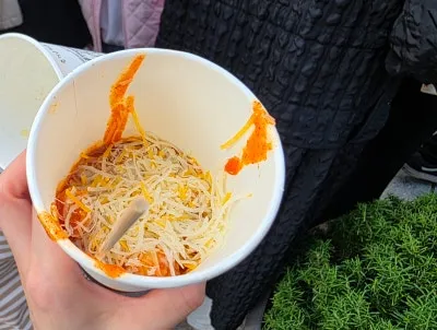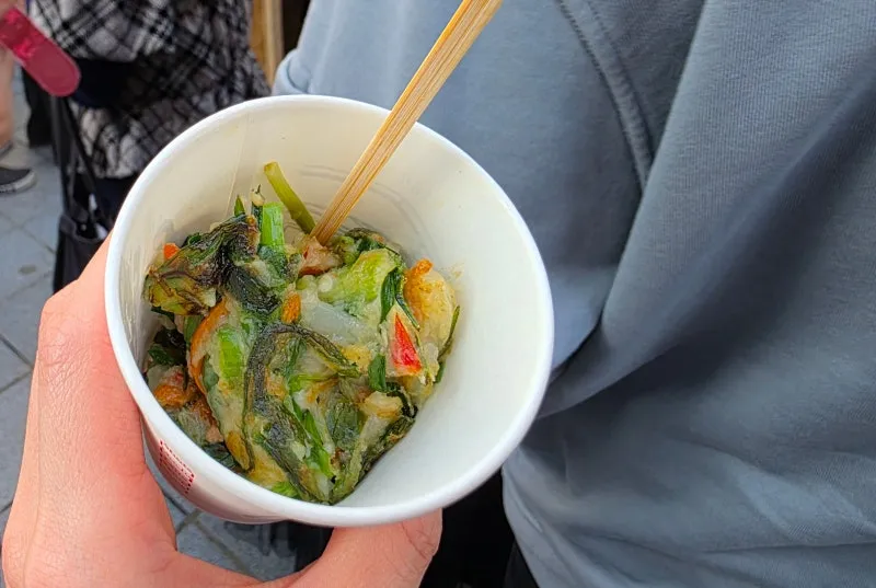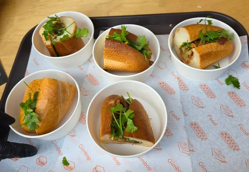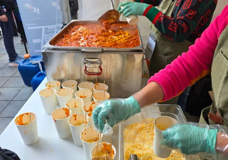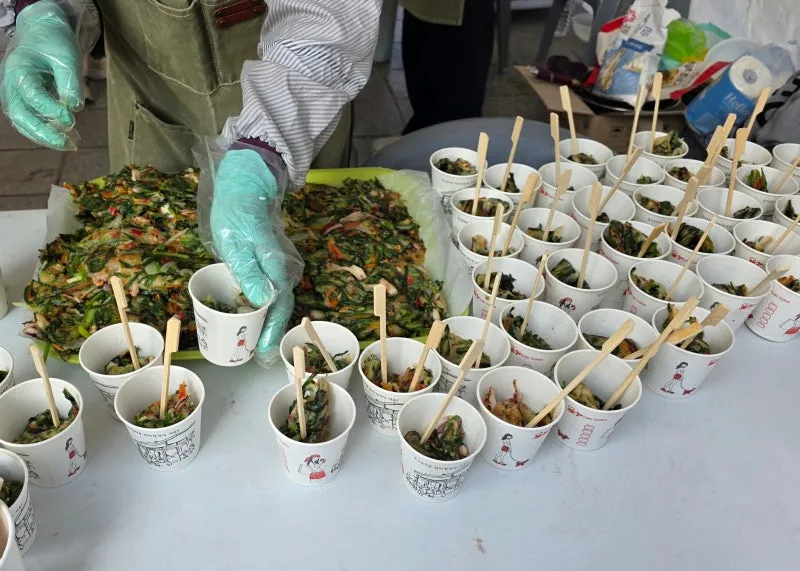 시식 존에서는 K-푸드를 소개하고 있었어요. 양도 많고요. 외국인 뿐만 아니라 내국인들도 함께 먹으며,