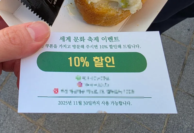 시식과 함께 세계 문화축제 이벤트로 쿠폰을 나누어 주었는데요.