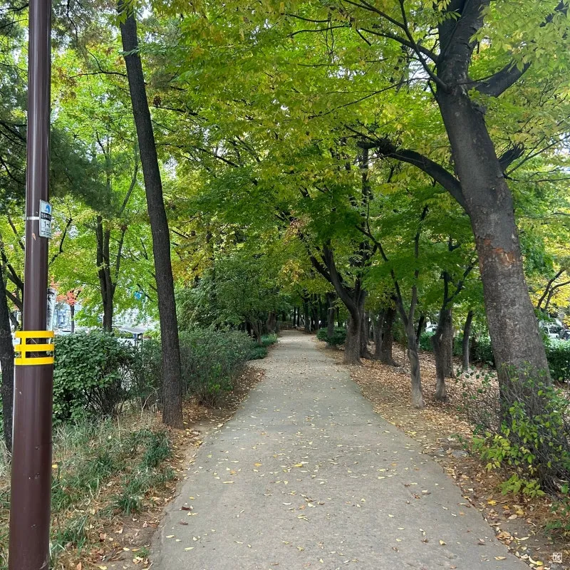 낙엽이 수북이 쌓인 산책로를 걷다 보면 도시 속에서