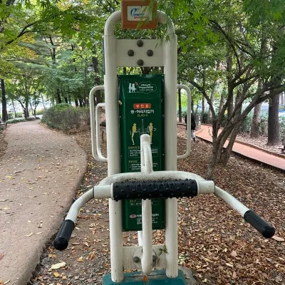 황톳길을 따라 곳곳에는 다양한 운동기구가 설치되어 있어 걷기 후
