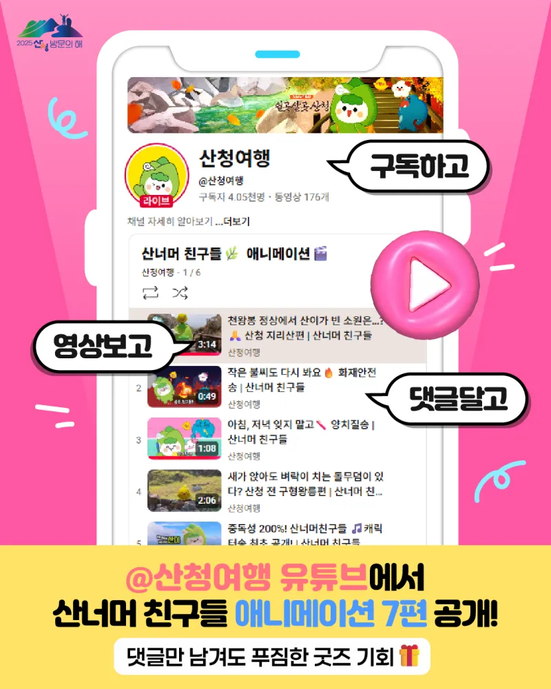 1️⃣ 유튜브 <@산청여행> 채널 구독