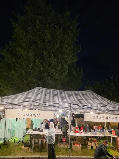 동헌 및 내아의 내부로 들어가면 스탬프 투어를 진행하는 시민들부터 한글책가도 체험, 쥐불놀이 체험, 칠보매듭, 민화부채, 자개거울, 킨츠키 다도, 유생복 체험을 위해 줄을 서있는 모습도 구경할 수 있었어요. 이 중 다도체험의 경우 사전예약이 필요했고 나머지는 현장에서 참여해 볼 수 있었답니다. 동헌 상소문 쓰기와 큰애기 야시장 영수증 이벤트 등 현장에서 참여 가능한 이벤트도 정말 많이 구성되어 있어 3일 내내 방문해도 부족할 정도였어요!