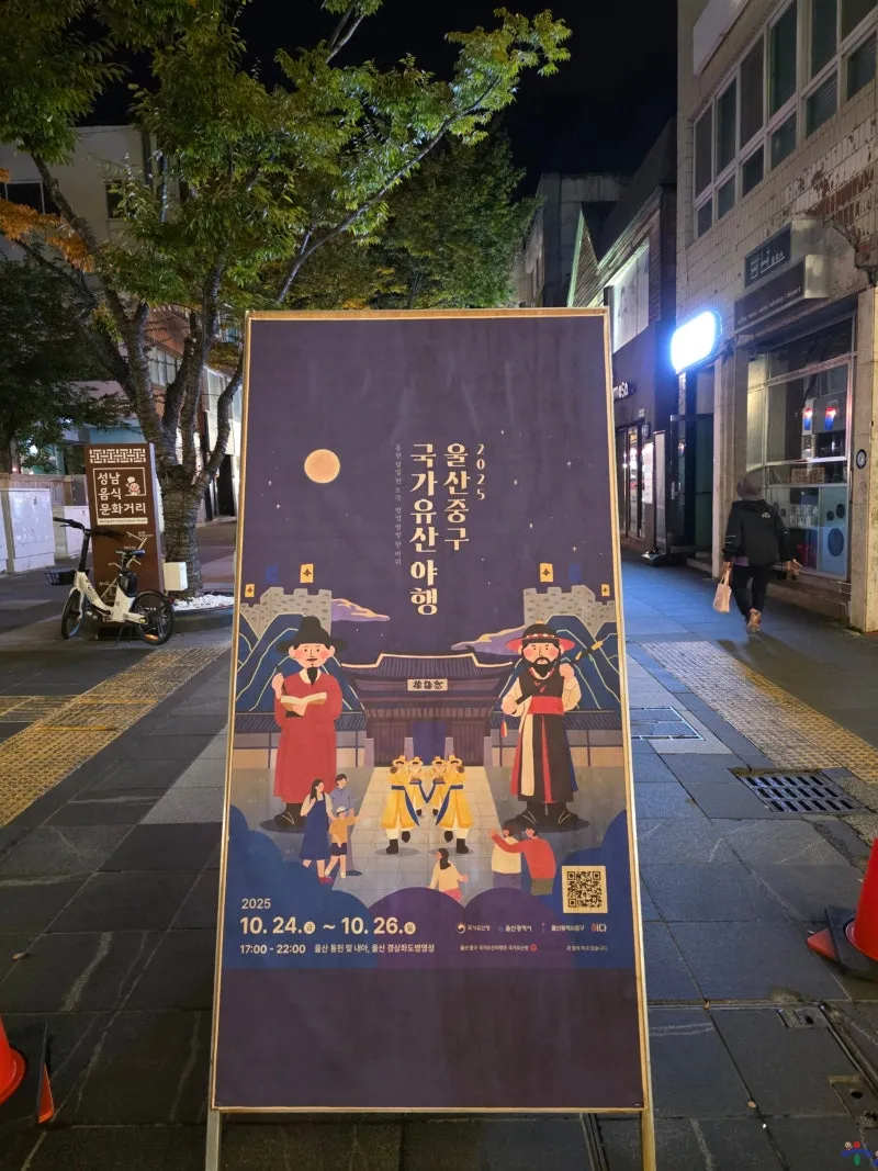 무료로 즐길 수 있는 다양한 프로그램으로 알차게 구성되어 있었던 2025년 울산 중구 국가유산 야행, 문과 무를 대표하는 가치관을 엿볼 수 있는 야행 프로그램이라 더 특별하게 느껴졌던 것 같아요. 선선한 가을날 울산에서는 매주 이색적이고 다양한 축제가 진행되고 있으니 많은 관심 가져보시는 걸 추천드립니다!