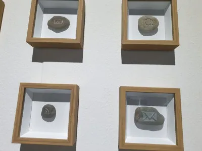 멀리서 보면 작은 돌들이지만 가까이서 보면 각각 예사롭지 않은 그림들이 새겨져 있어요.