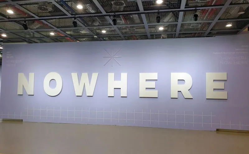 전시 제목은 'Nowhere(어디에도 없음)'이자 'Now Here(지금 이곳)'이라는 중의적 표현으로, 익숙한 중심과 주변의 개념을 뒤집어 예술이 자리하는 새로운 공간과 시점을 제안하고 있어요.