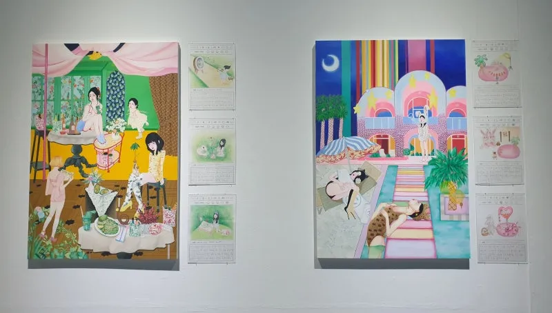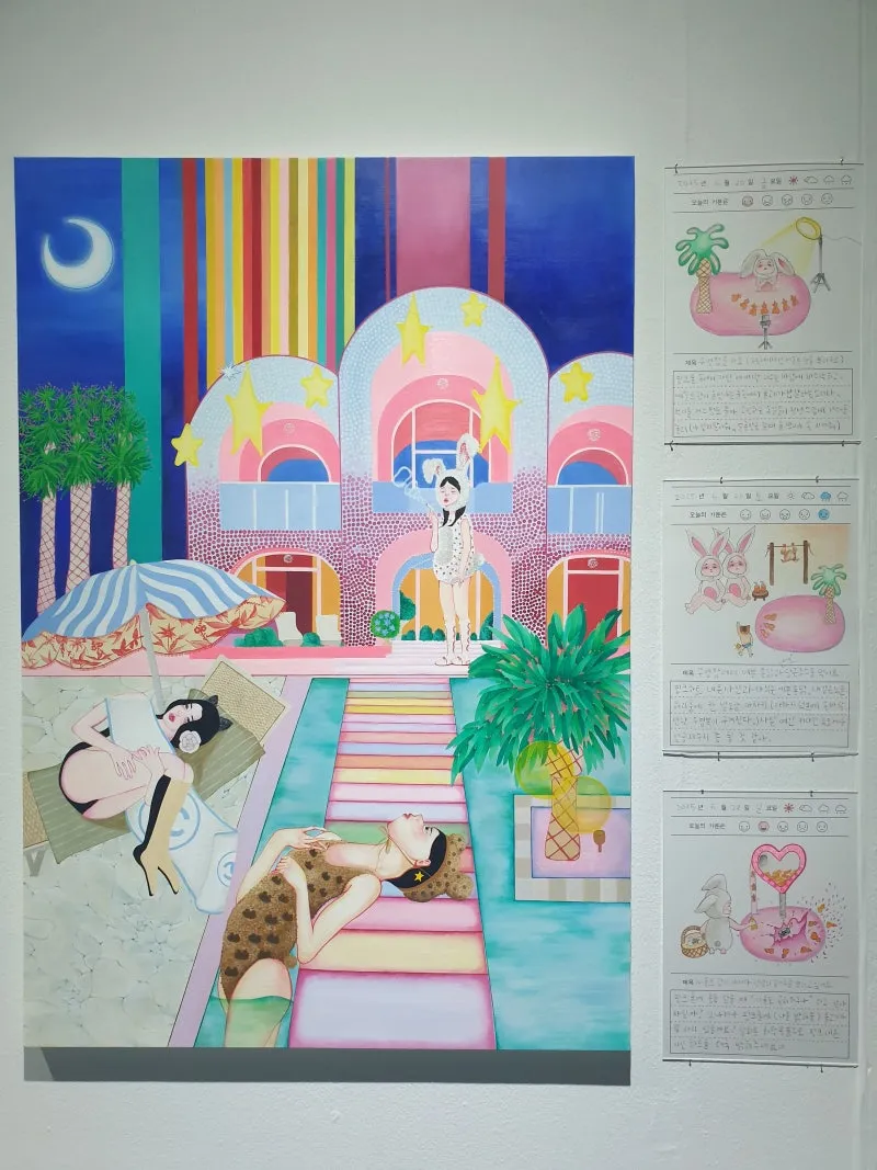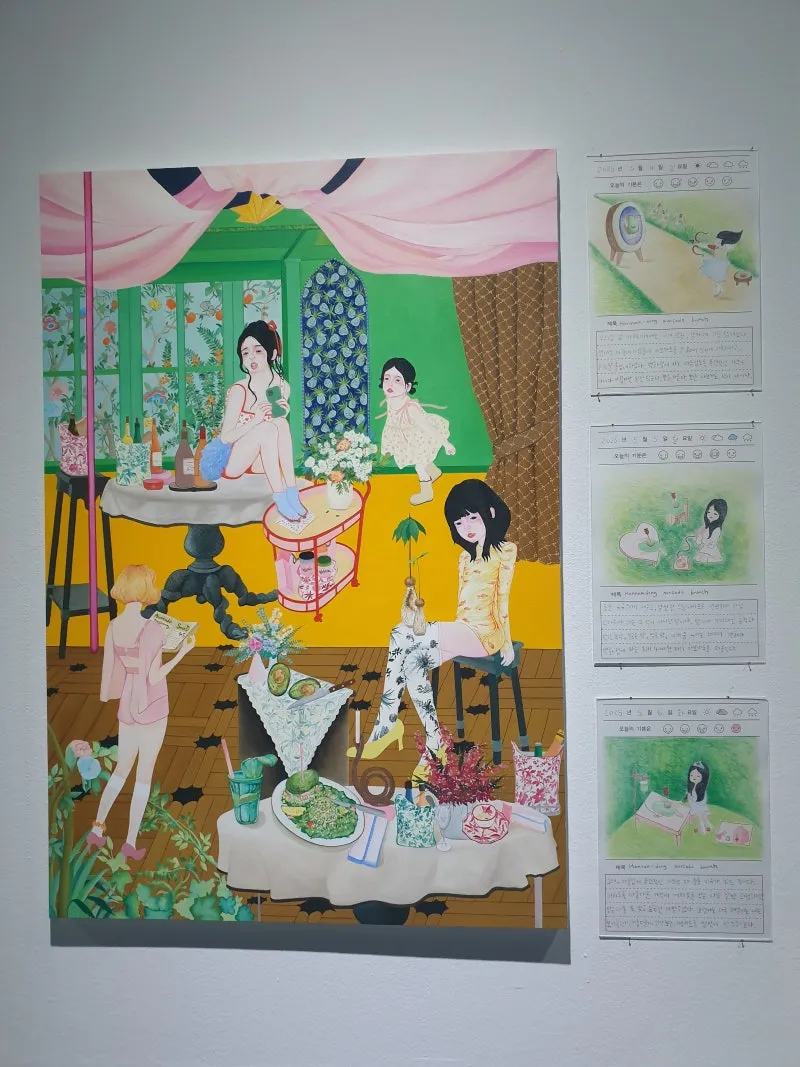 바다소금 향은 자본주의 허세의 향일까요? 핑크 가득 사랑스런 그림 속에 씁쓸함이 느껴지는 작품들.
