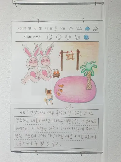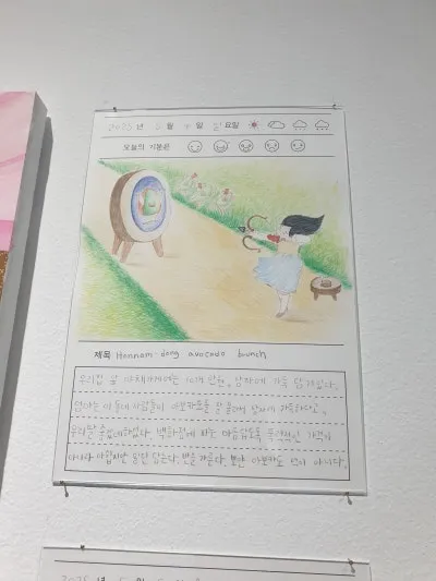색연필로 그린 그림일기장, 제목은 '한남동 아보카도 브런치',