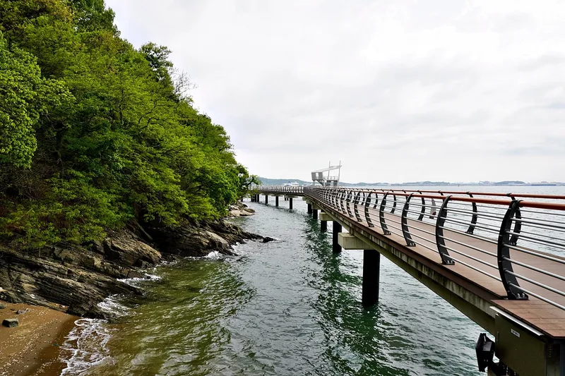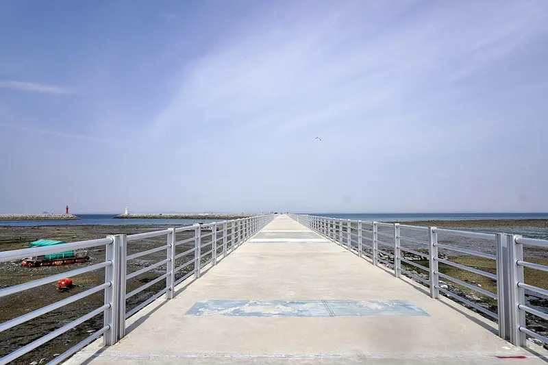 산책로가 해안선을 따라 길게 이어집니다. 하루에 두 번 밀물과 썰물에 따라 바다는 넓은 갯벌이 드러나기도 하고 푸른 바다를 보여주기도 하네요. 찾아갔던 날은 만조 때였던 듯 여러 번 방문했던 중 가장 깊은 바다였습니다.