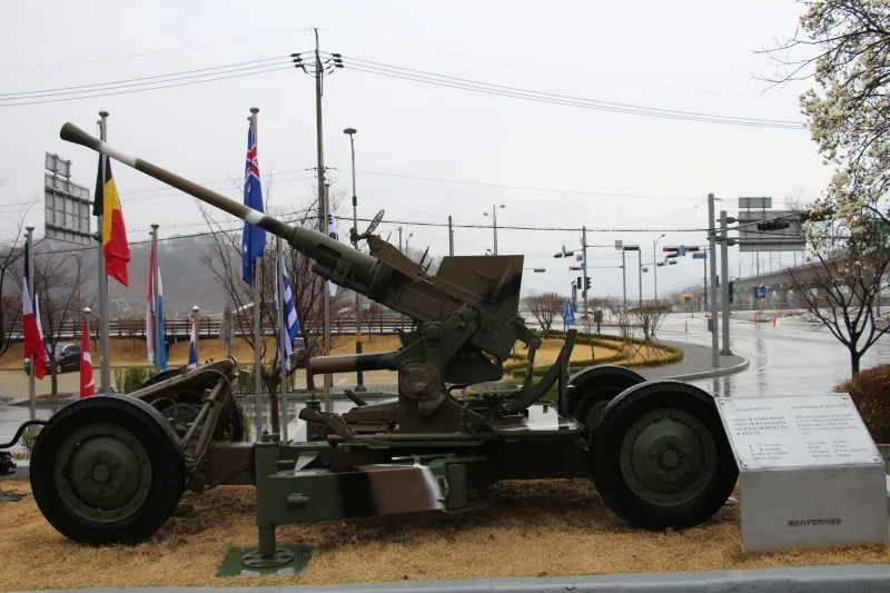 야외전시장에 전시되어 있는 40mm 대공포입니다 1962년 4월 미국에서 생산되어 1983년 5월 한국군에 도입되었으며 2006년 2월 현역에서 퇴역한 대공포입니다