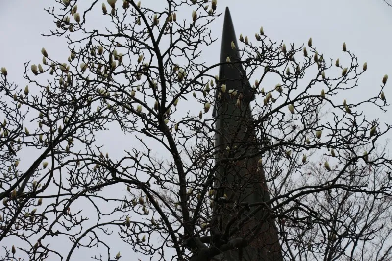 미사일 유도탄 앞에 하얀 목련이 이제 활짝 꽃봉오리를 틔우면서 왜관전적기념관에도 봄이 왔음을 알려줍니다