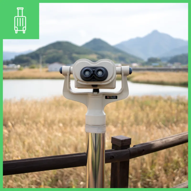 조류를 관찰할 수 있는 쉼터와 망원경이 설치되어 있었습니다.