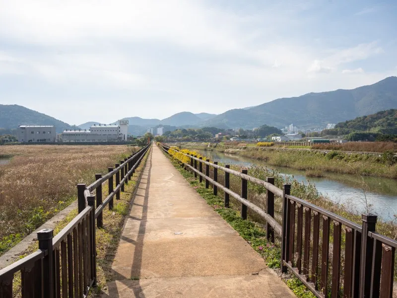 길의 좌우로 억새와 철새, 제방 등을 볼 수 있는 곳입니다.