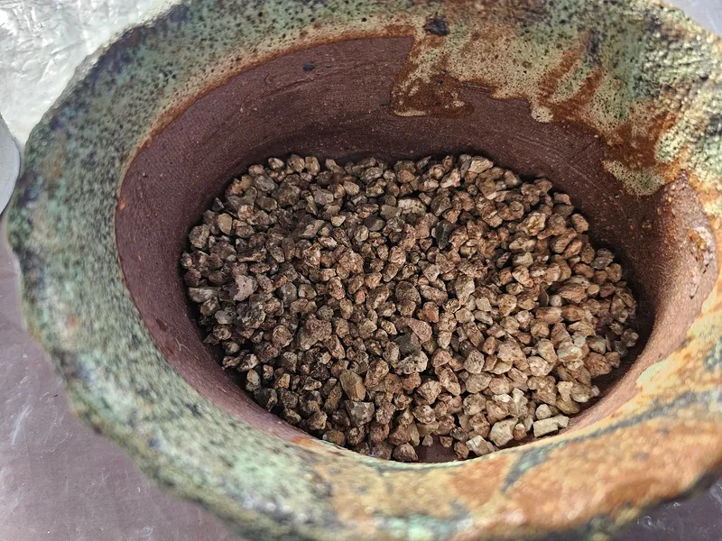 바닥에 배수가 잘 되도록 굵은 마사토를 깔아주었습니다.