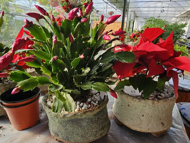 식물 이름은 게발선인장과 포인세티아에요.
