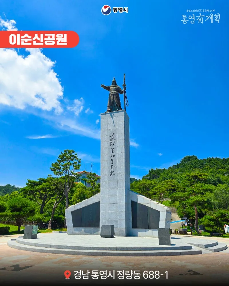 이순신 장군 동상 앞에서 기념사진도 남겨보세요.