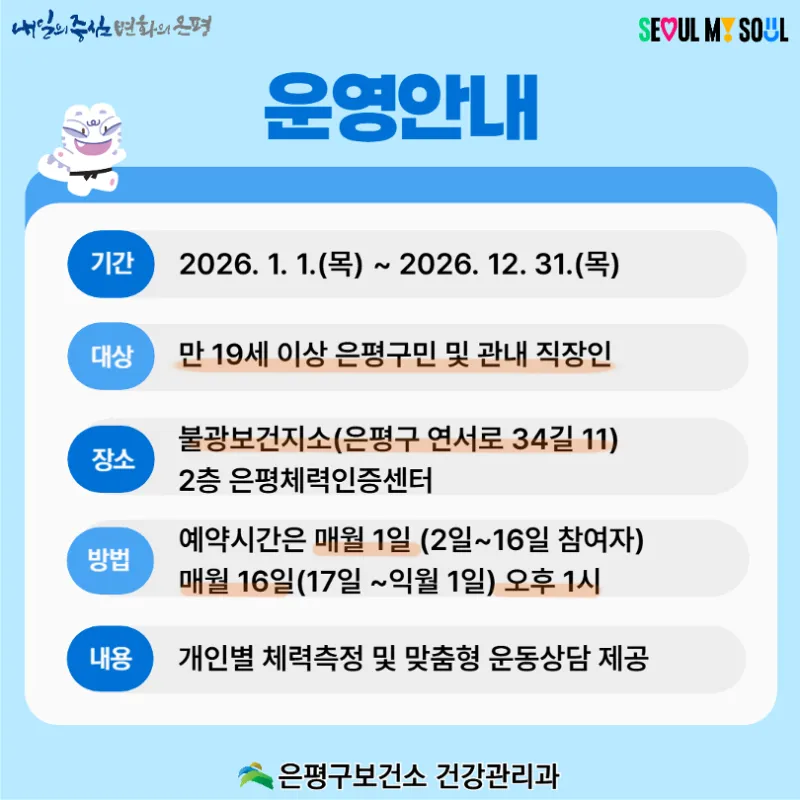 서울체력 9988 「은평체력인증센터」 개소 "이용대상, 이용방법, 장소 등 안내"