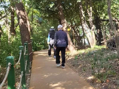 이른 아침 시간인데도 부산진성 산책로에는 많은 주민이 가볍게 산책을 합니다. 산책로가 완만해서 남녀노소 모두가 부담 없이 걸을 수 있습니다. 더불어 부산진성 산책로 주변에는 숲이 우거져 새소리도 들리고, 그늘도 있어서 춥지도, 덥지도 않고 정말 좋습니다.