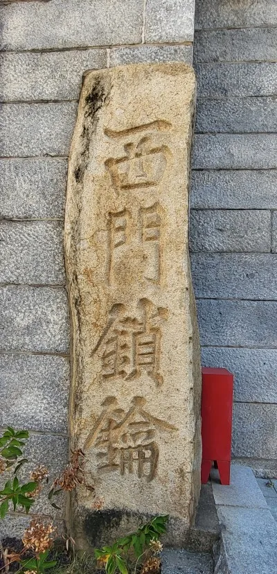 제일 먼저 보이는 게 부산진성 서문 우주석이 서문인 금루관을 든든하게 지키고 있습니다. '남요인후 서문쇄약' 이것은 나라의 목구멍에 해당하는 남쪽 국경이라, 서문은 나라의 자물쇠와도 같다는 뜻입니다. 부산진이 조선에서 그만큼 중요한 곳이라는 의미입니다.