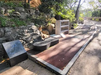 부산진성 서문을 지나면 오른쪽에 부산진성 숲속 작은도서관이 있습니다. 예전에는 자성대 숲속 작은도서관이었던 걸로 기억합니다. 산책로 입구에 맨발지압보도가 있어요. 신발을 벗어 놓고 맨발로 걸으면 자극이 가는 발의 부위별로 어디 어디가 좋다는 안내문도 있습니다.
