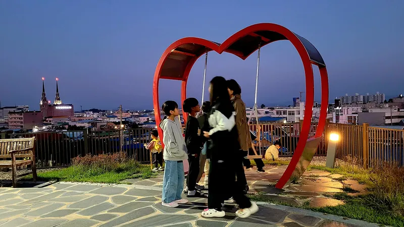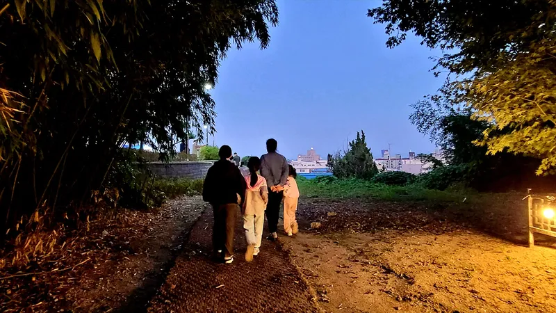 임리정 옆길을 따라 음악회가 열리는 동산에 오르는 가족의 모습이 단란하고 행복해 보입니다.
