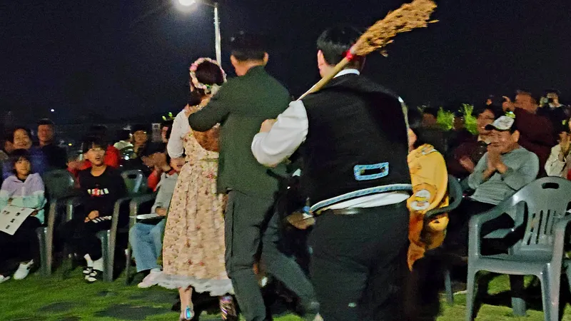 깊어가는 가을을 알리는 풀벌레 소리가 정겹게 들리는 가운데 300년이 넘은 팽나무의 거대한 기둥 아래 아름다운 조명을 비추는 무대가 꾸며졌습니다.