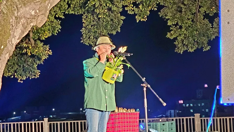 또 하나의 특별한 연주가 있었습니다. 풀피리 연주가의 풀피리 음악입니다. 풀잎만 있으면 연주가 가능하답니다. 상추, 깻잎으로도 풀피리를 만들어 연주하신답니다.