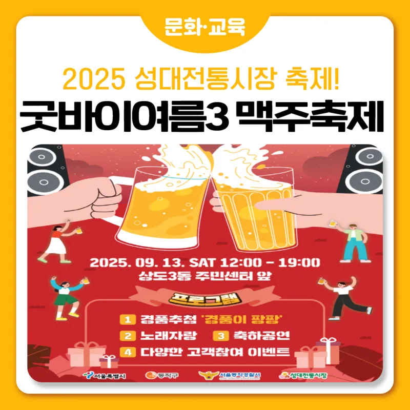 아직 여름을 보내기 아쉽다면?! 👉 이번 주말 성대전통시장에서 열리는 맥주축제로 모이세요! 🍺