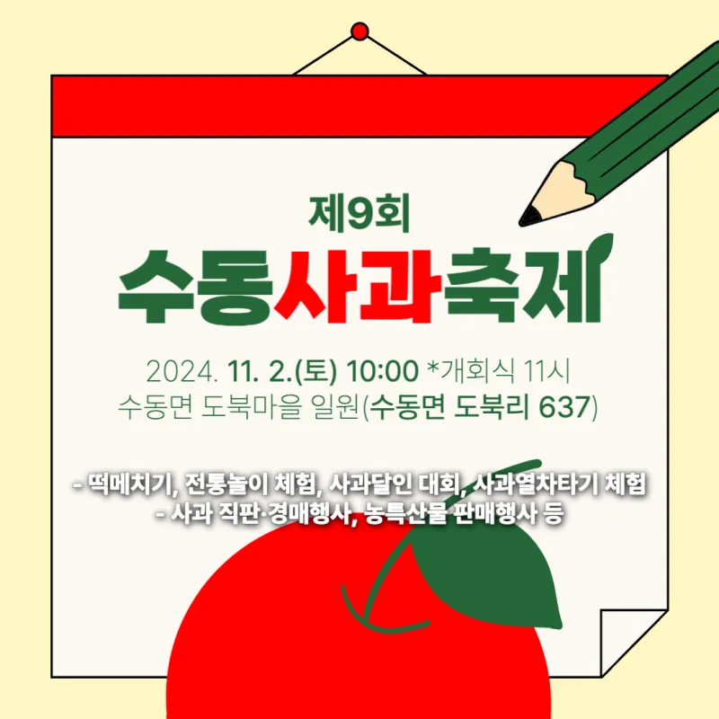 🍎 제9회 수동사과축제 개최 안내 🍏