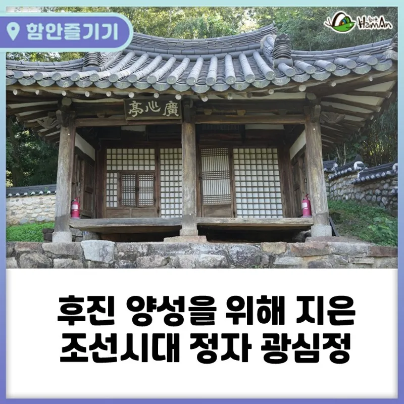 오늘은 함안에 있는 후진 양성을 위해 지은 정자, 광심정에 대해 소개해 드리겠습니다.