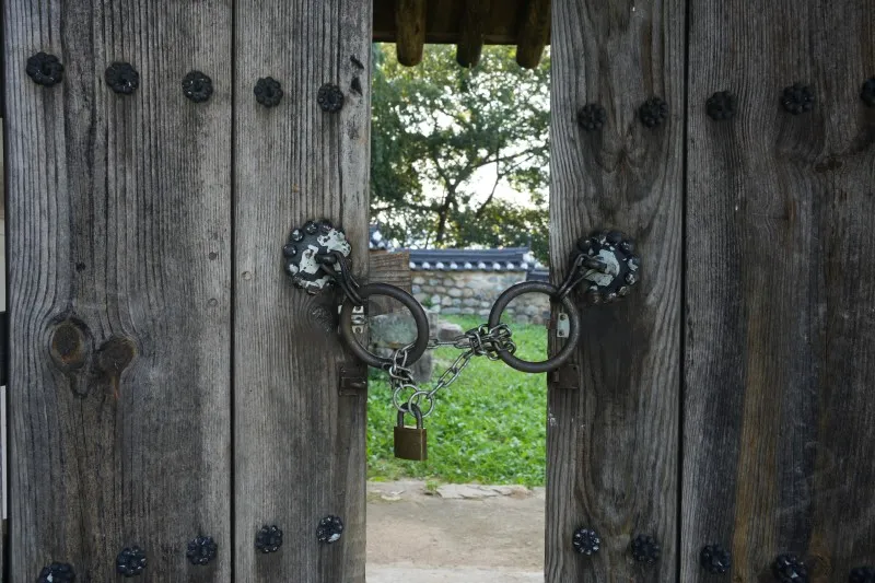 담장이 그렇게 높지는 않아서 안을 잘 들여다볼 수 있으며, 담장 뒤편으로 대나무 숲의 모습도 보였습니다.