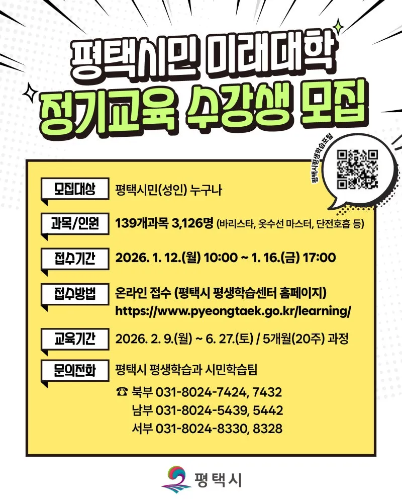🎓「평택시민 미래대학」 정기교육 프로그램 수강생 모집!