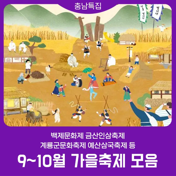 9월~10월 가을축제 풍성 | 백제문화제 | 금산인삼축제 | 계룡군문화축제 | 외암짚풀문화제 | 예산장터삼국축제 | 의좋은형제축제