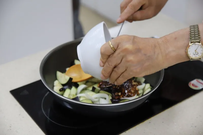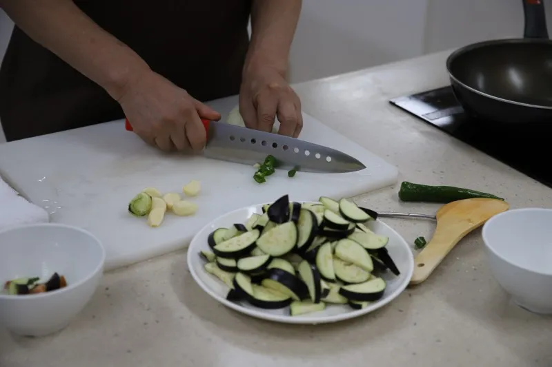 이제 본격적으로 가지볶음 요리를 시작해요.