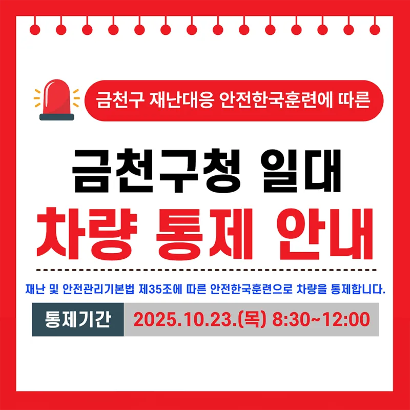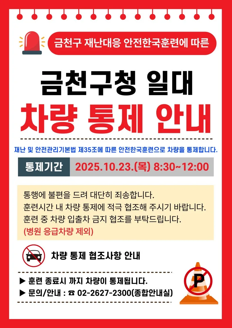 2025년 재난대응 안전한국훈련 교통통제 안내
