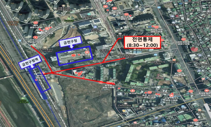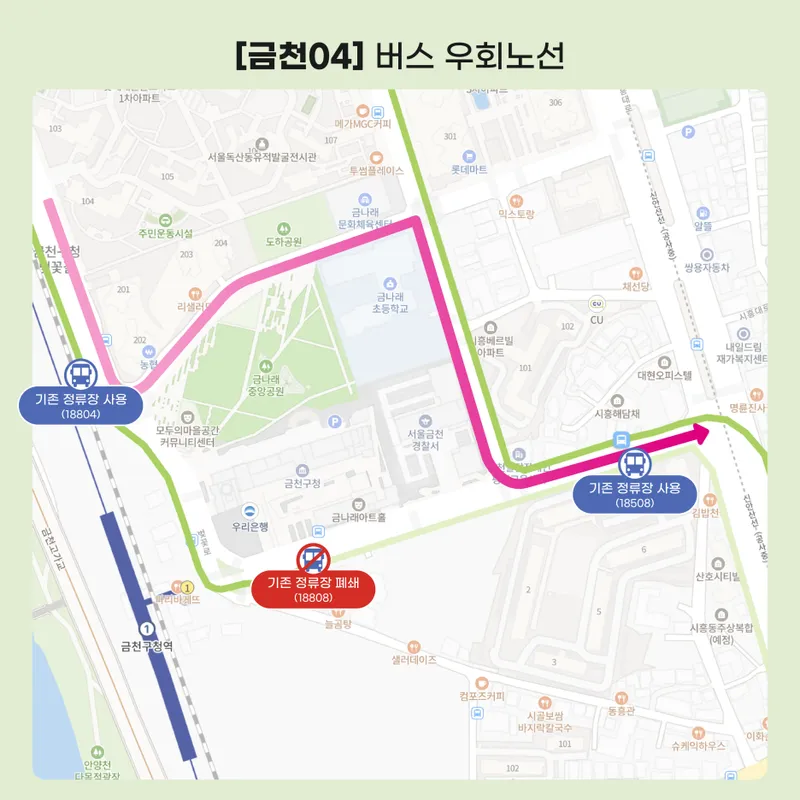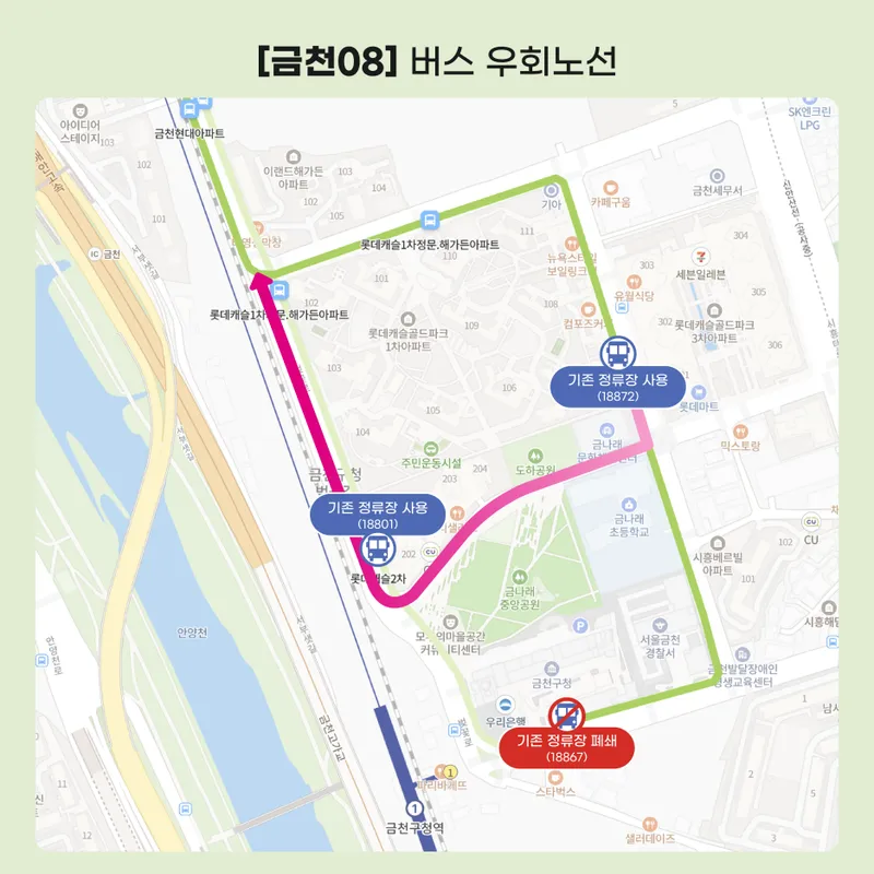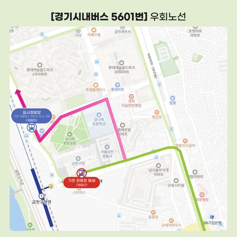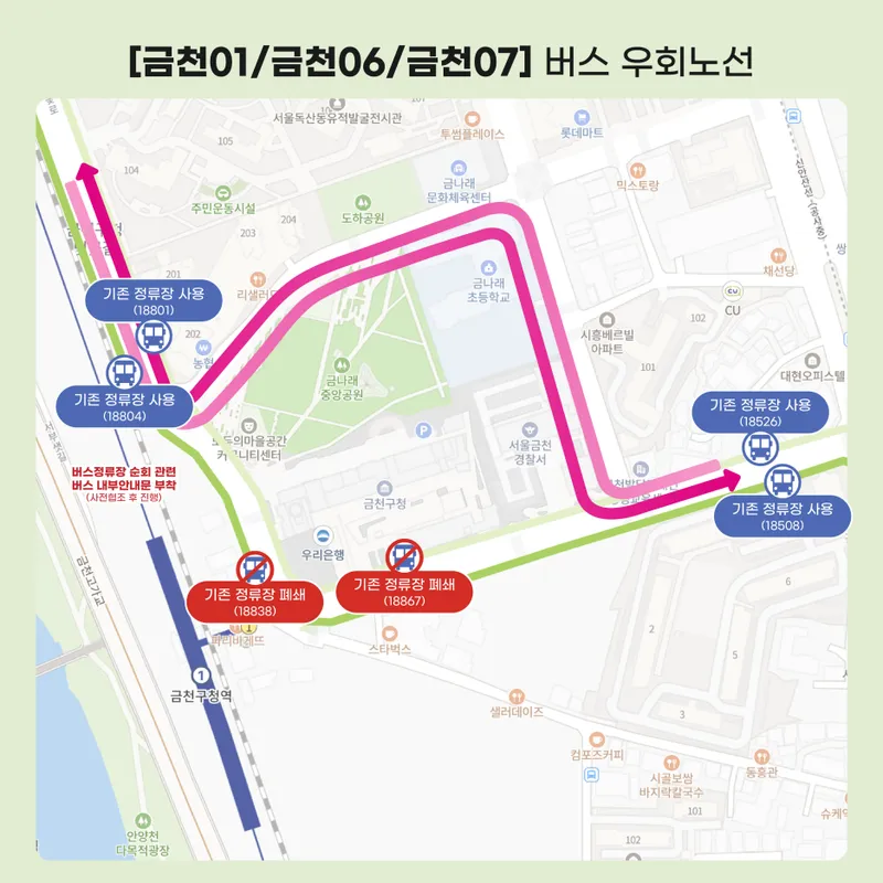 2025 재난대응 안전한국훈련 임시버스정류장 및 우회노선 안내(금천01/02/04/06/07/08/5601)