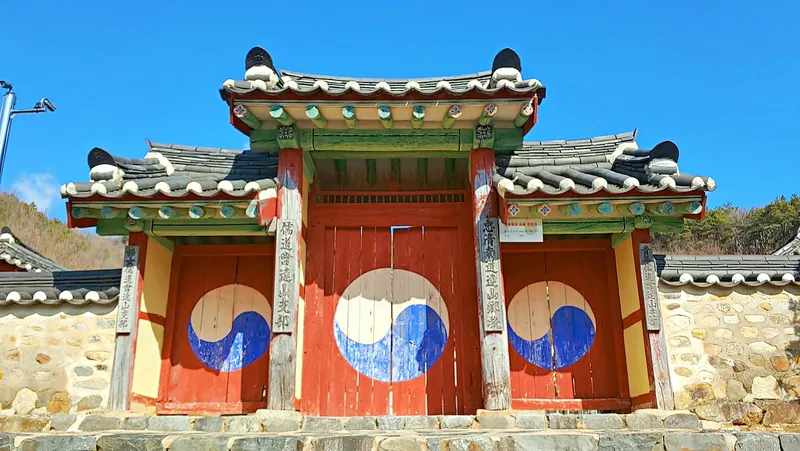 향교 입구에는 붉은 홍살문이 자리하고 있고