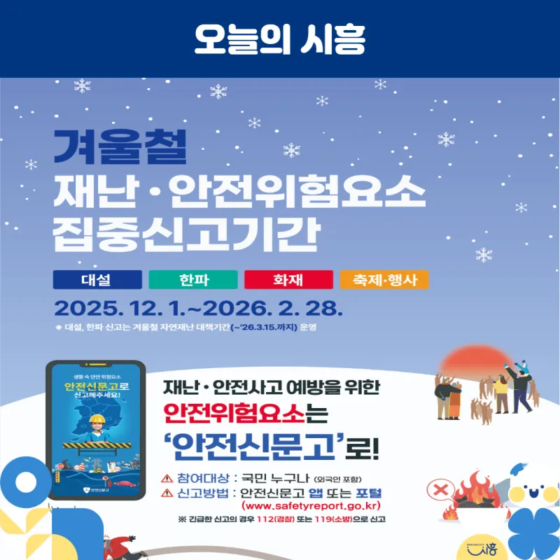 겨울철 재난·안전위험요소 집중신고기간 운영 안내