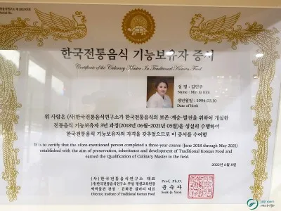 다른 한쪽 벽에도 상장과 인증서 등으로 가득 채워져 있었습니다. 의령부자망개떡 본점에는 한국전통음식 기능보유자 자격을 갖춘 분도 계시더라고요.