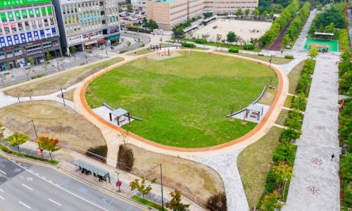새롬동 체육시설용지 유휴지 잔디광장으로 탈바꿈 - 유휴지 임시 활용…맨발 산책로 등 갖춘 잔디광장 조성 완료 - 세종특별자치시(시장 최민호)가 새롬동 체육시설용지 유휴지 7,154㎡(새롬동 577번지)를 도심 속 임시 잔디광장으로 조성해 시민들에게 개방했다. 해당부지는 새롬동 주민센터와 학교가 인접해 있고 아파트 단지와 상업시설이 밀집돼 있지만 그동안 공터로 방치돼 도시미관을 저해한다는 의견이 있었다. 시는 시민들의 의견을 적극 수렴해 행복도시 체육시설용지 장단기 활용방안을 수립하고 체육시설용지의 단기활용을 위한 잔디광장 조성사업...