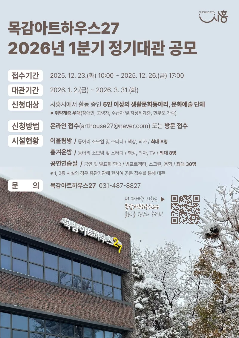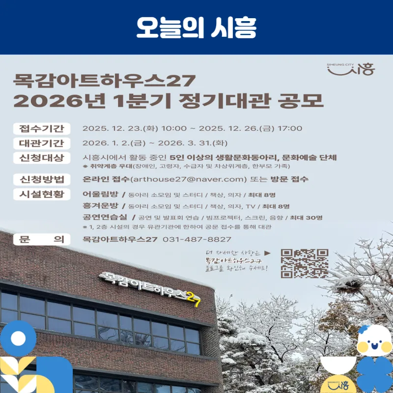목감하우스27에서 2026년 1분기 정기대관 접수를 진행합니다!