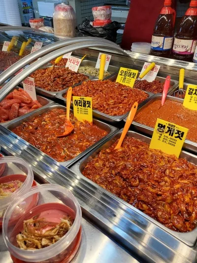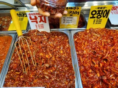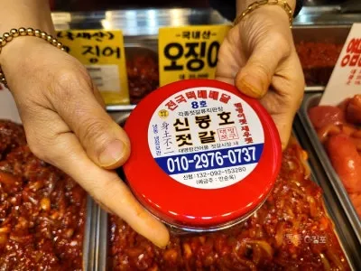 한 바퀴 돌아보고는 다시 이 자리로 와서는 새우젓과 반찬을 구매했어요.