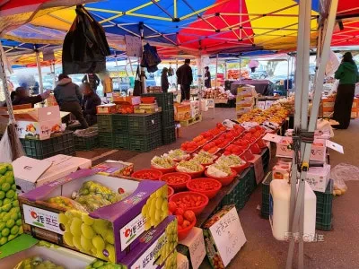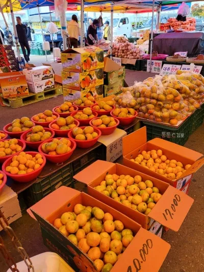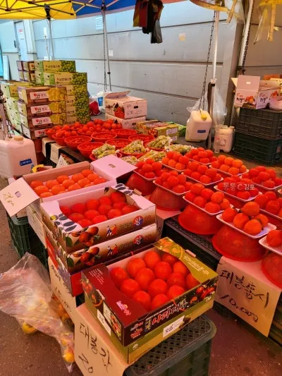 바깥으로 나오니 과일과 농산물이 진짜 많아요.