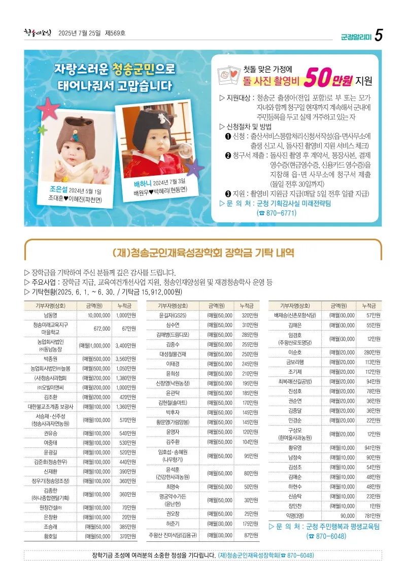 25년 7월 청송 새소식지 확인하시고