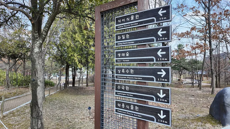 목련원, 약용식물원, 암석원, 유실수원, 단풍나무원, 소나무원, 관목원, 화밀원,