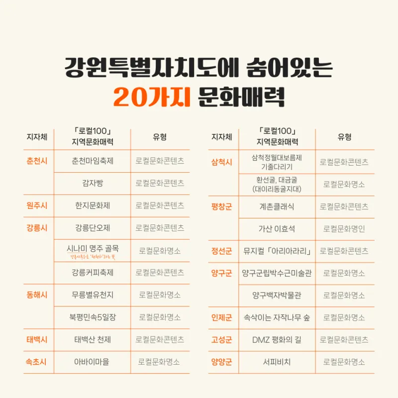 강원 로컬 20 으로 여행 즐겨요!🥳
