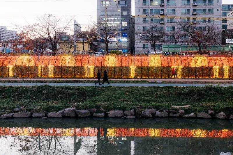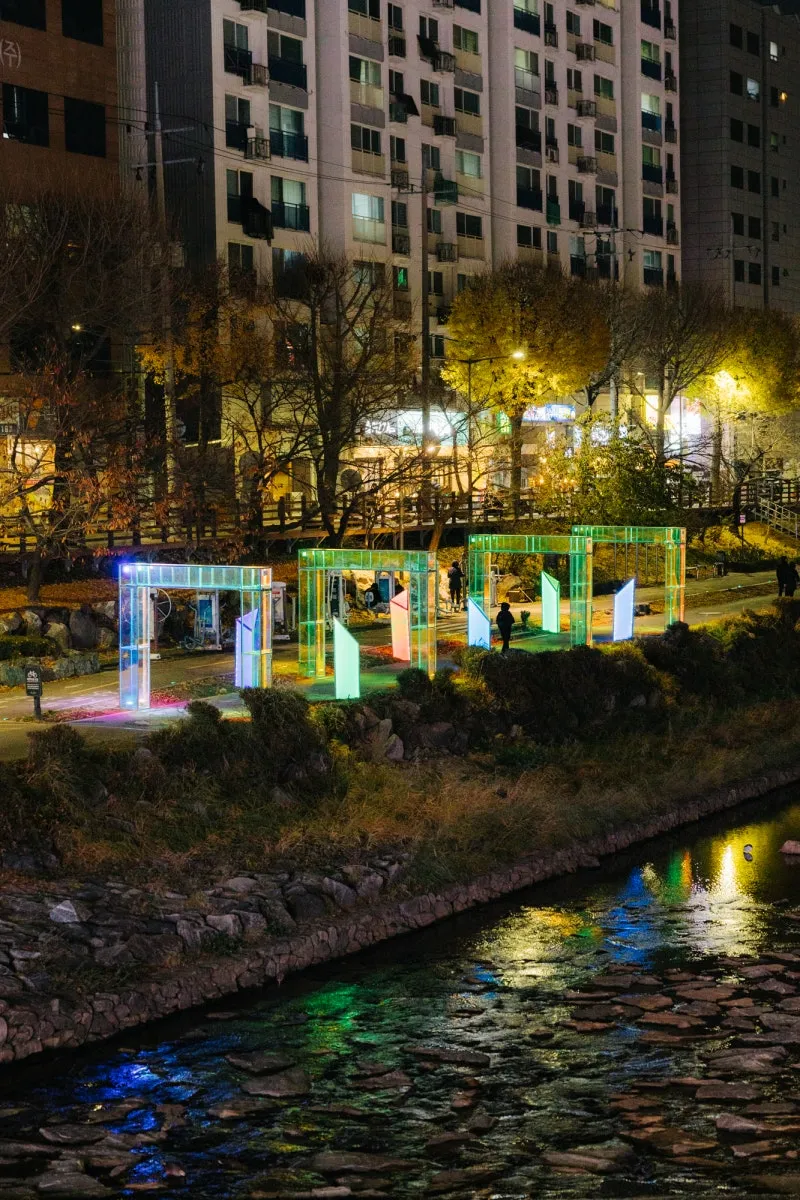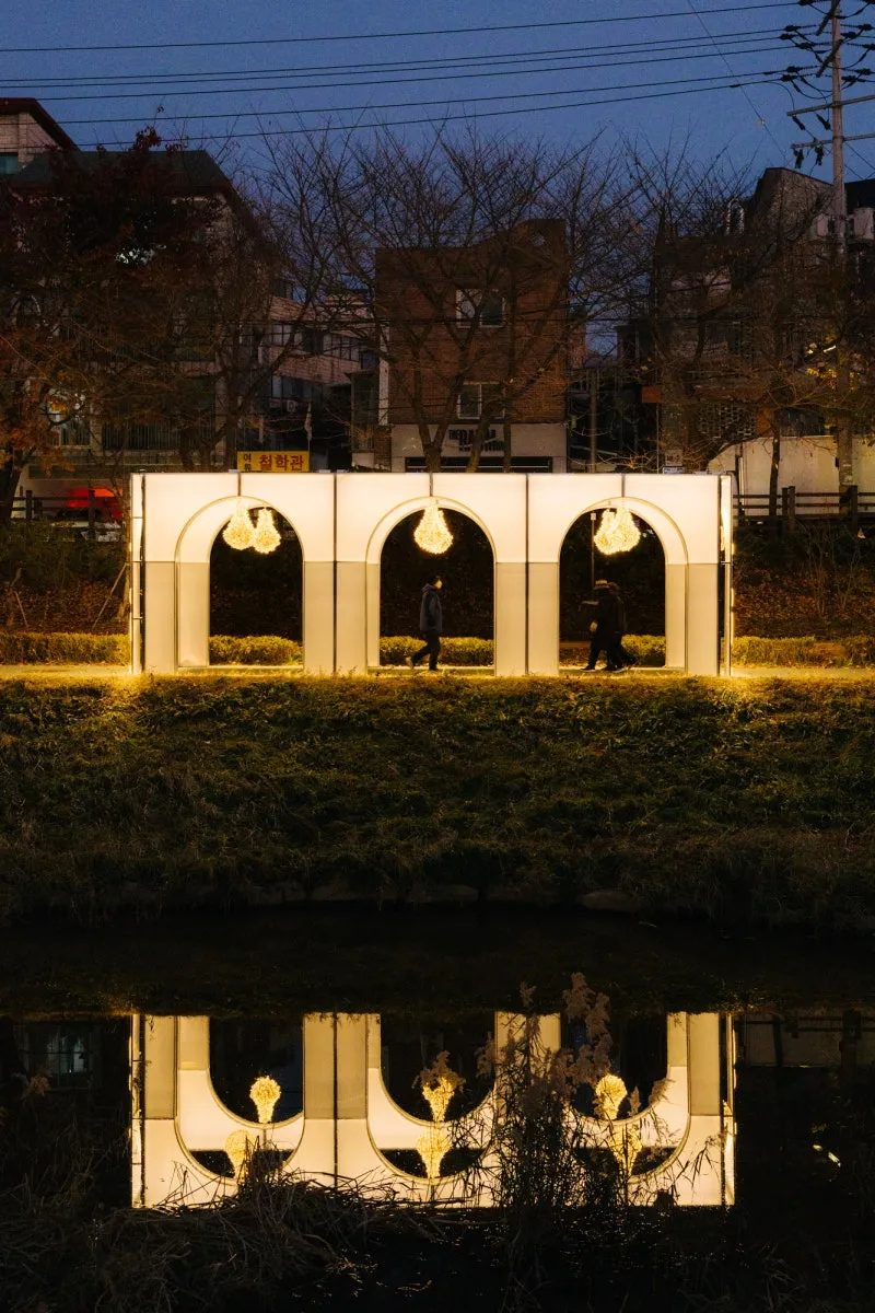 곳곳의 빛터널들은 불광천 물에 반사돼
